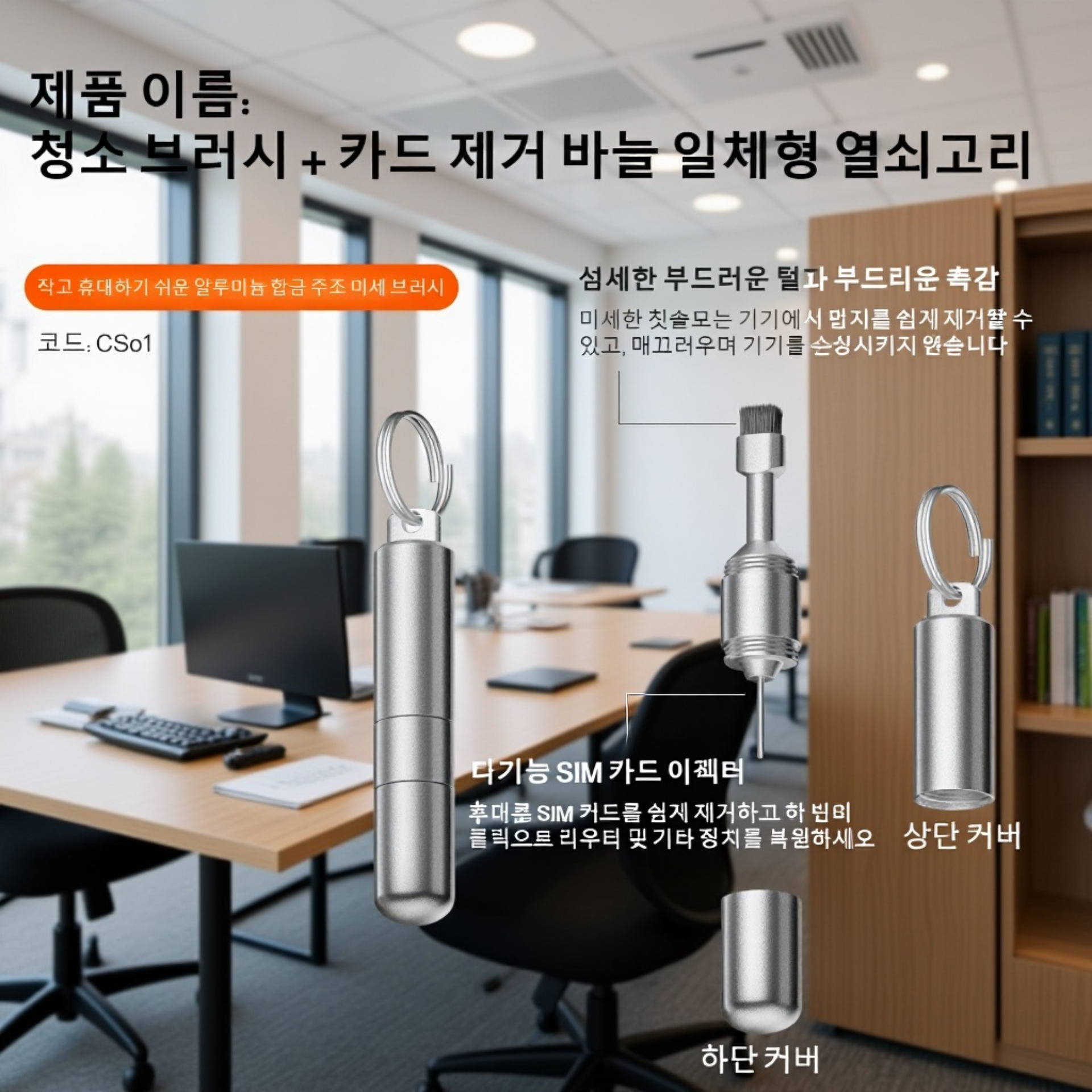 휴대폰 투인원 픽업 니들 헤드셋 먼지 청소 도구 블루투스 헤드셋 청소 브러시 키홀더 간편 청소 도구